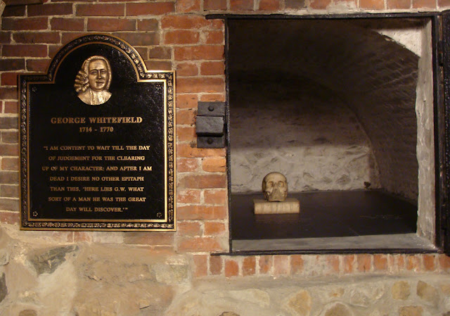 The church we used to go to in Massachusetts has the founder, Reverend George Whitefield, buried in the crypt in the basement. After his death in September 1770, a lot of people came to collect his body saying that George wanted to be buried in their cemetery, at their parish. He had established churches up and down the 13 colonies. So sure, I could see how people would want him to be buried there. But he was buried at Old South. End of conversation, right?